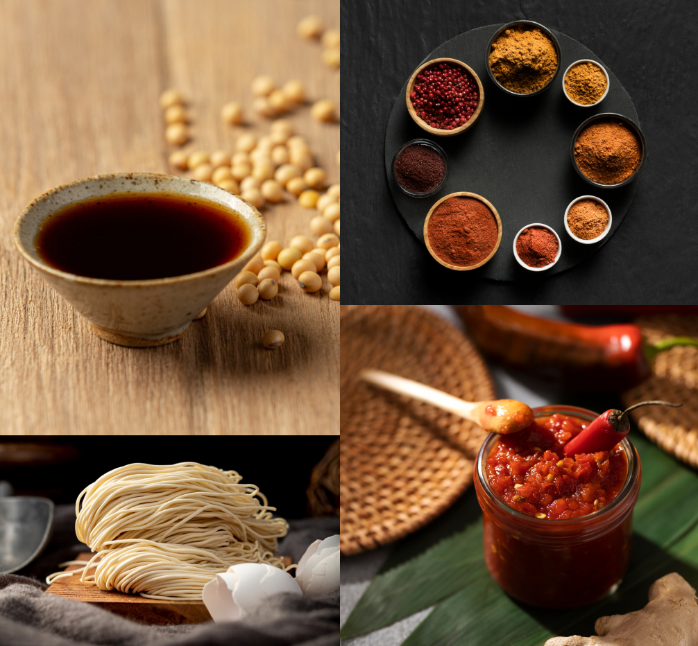 Sauces: chili sauces, soy sauces, seasoning sauces, marinades, dressings, and more.